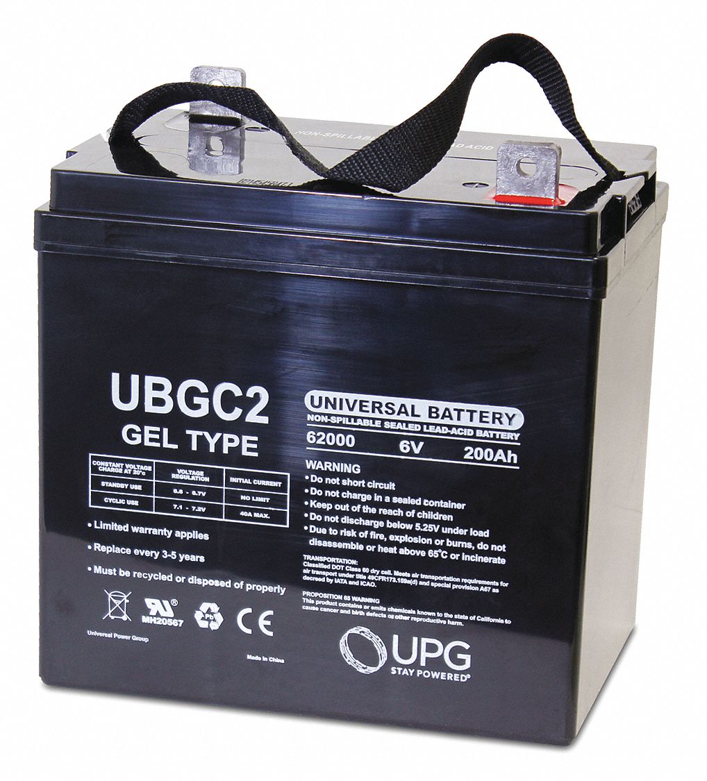 GRAINGER APPROVED 6V DC, Sealed Lead Acid Battery, 200 Ah, Tab with